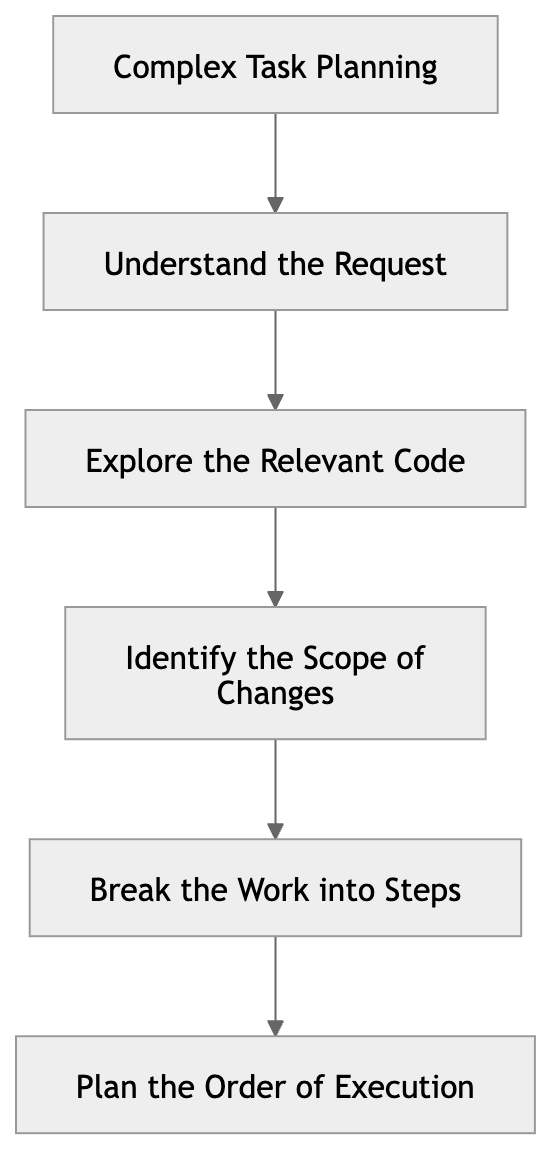 Once a task has clear context, the next challenge is execution. For complex requests, coding agents are most effective when they plan before they act.For more complex requests, asking the agent to start writing code immediately often leads to logic errors, unnecessary rework, or repeated revisions. A more effective approach is to have the agent produce a plan first, then move into implementation.This planning phase typically includes: